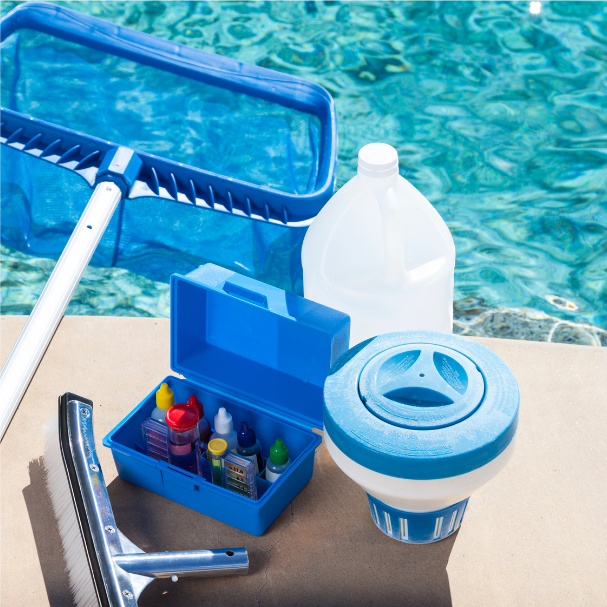 • Poolchemikalien zur Reinigung des Filterbeckens;