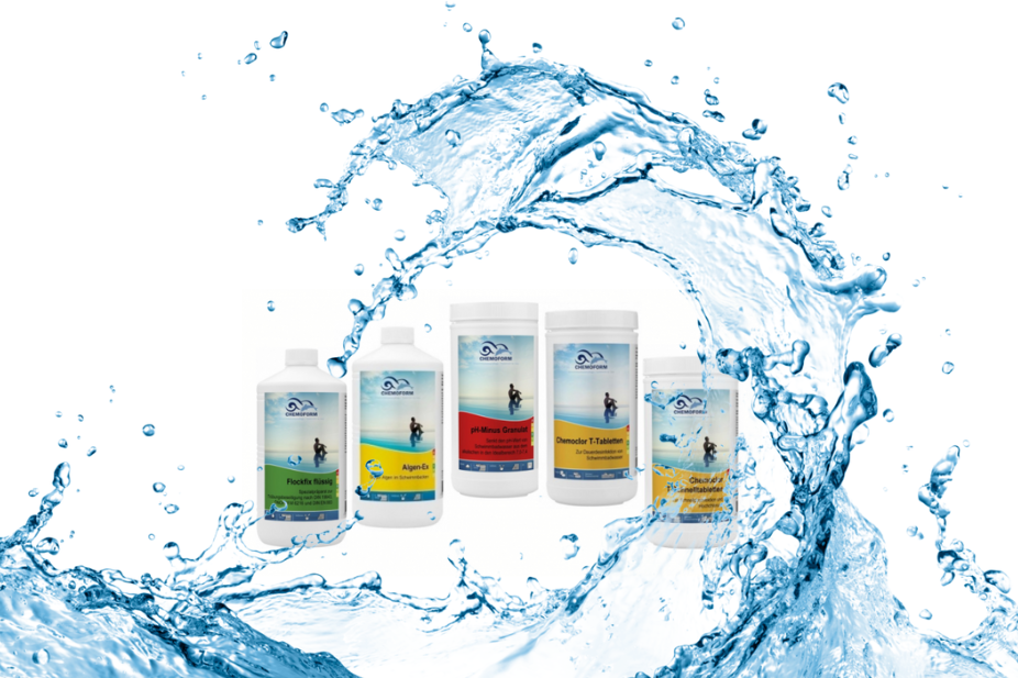Zur Erstbehandlung werden Poolchemikalien in Tabletten- oder Granulatform eingesetzt, die das Wasser intensiv aufbereiten.