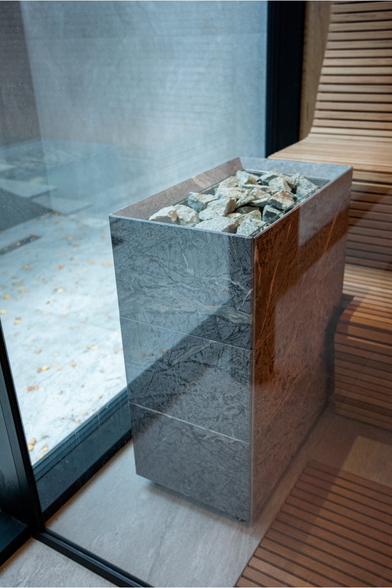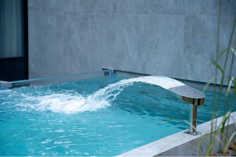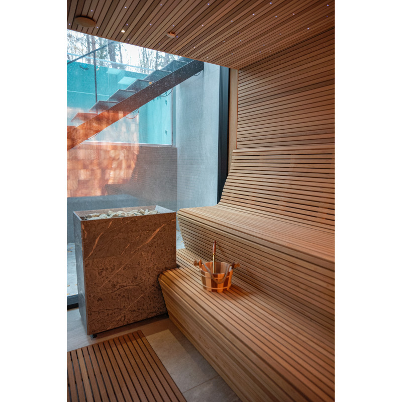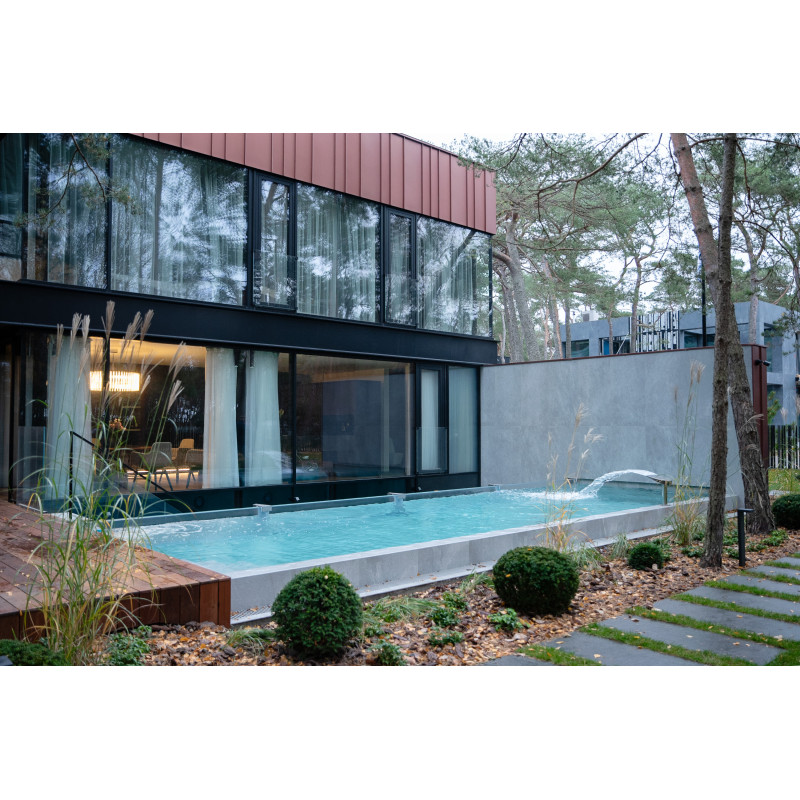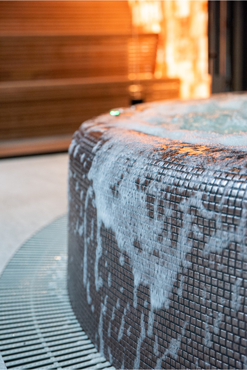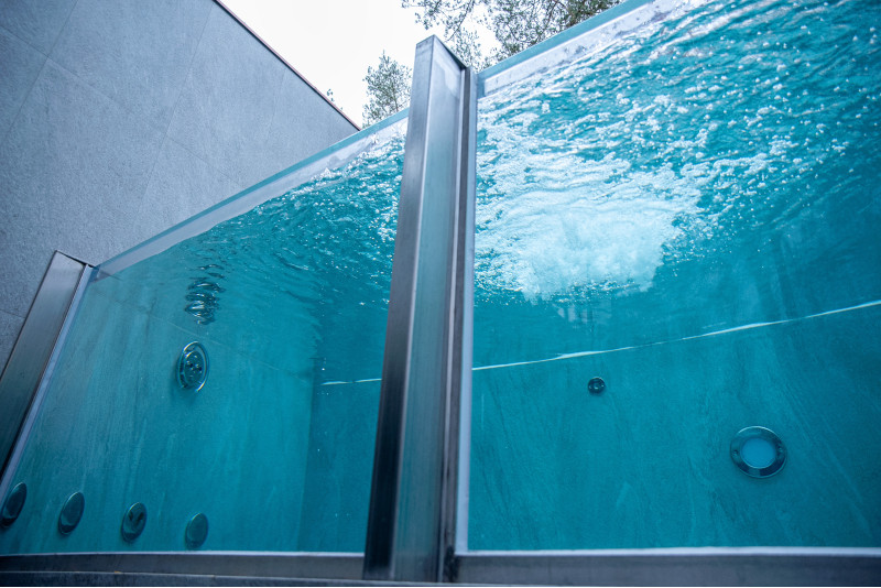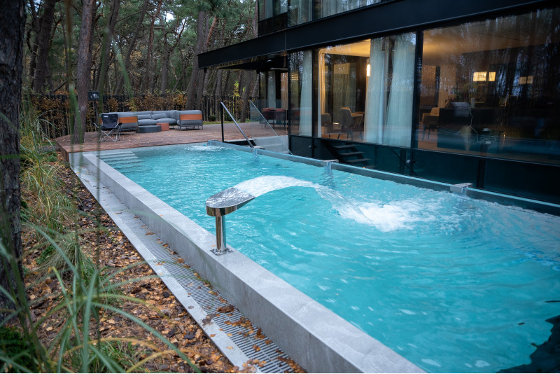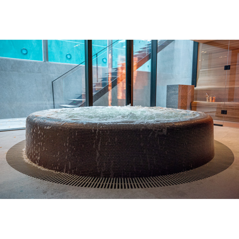 Individuelles Projekt einer Sauna, eines Außenpools, einer Aufgussvorrichtung und eines Whirlpools