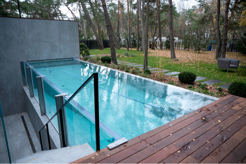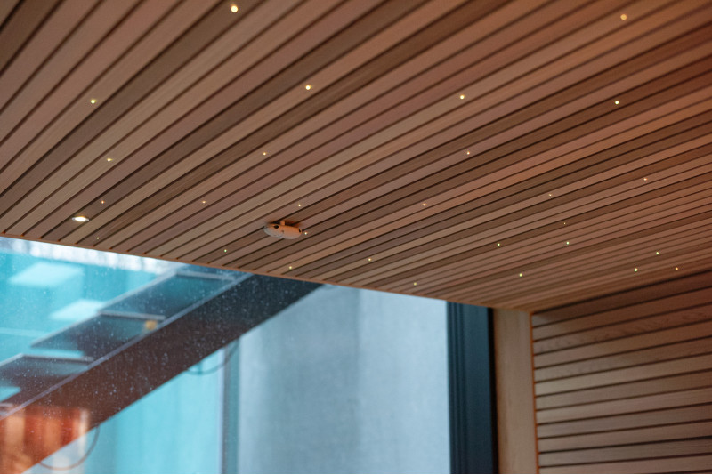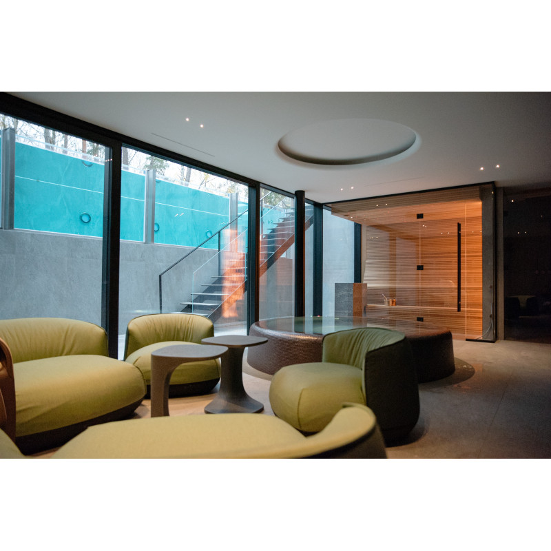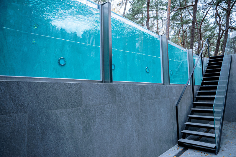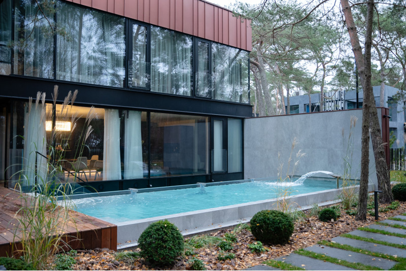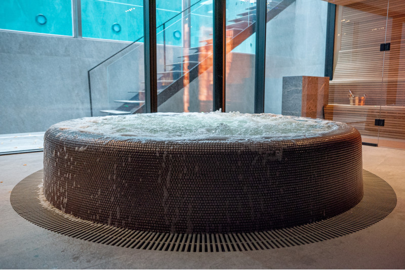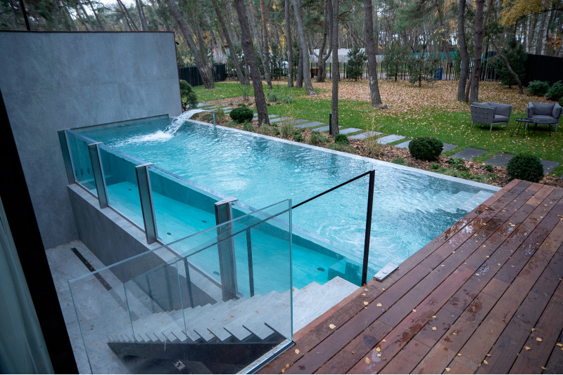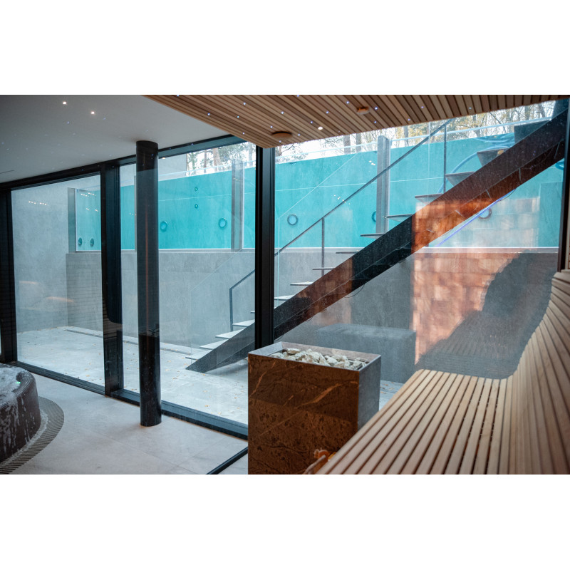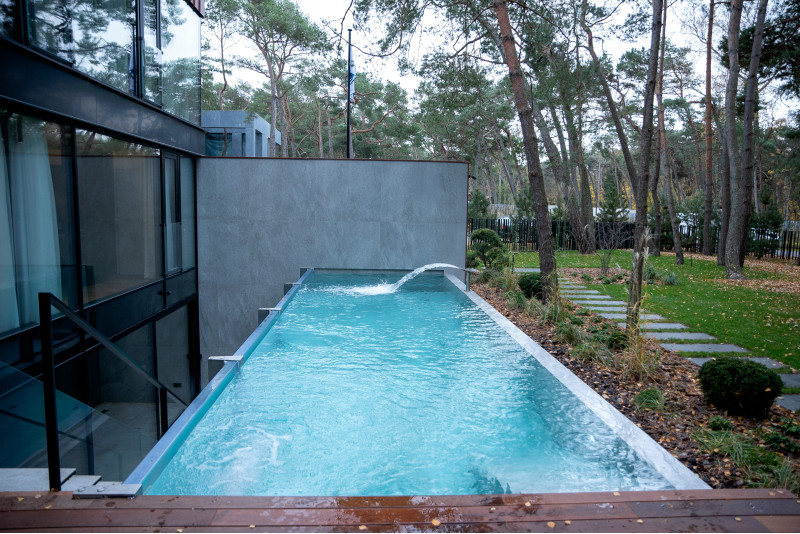 Individuelles Projekt einer Sauna, eines Außenpools, einer Aufgussvorrichtung und eines Whirlpools