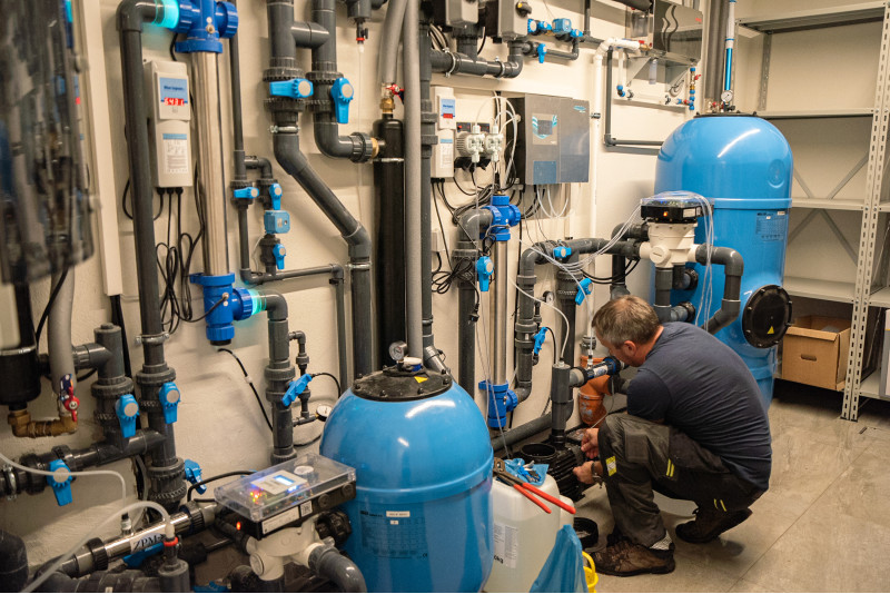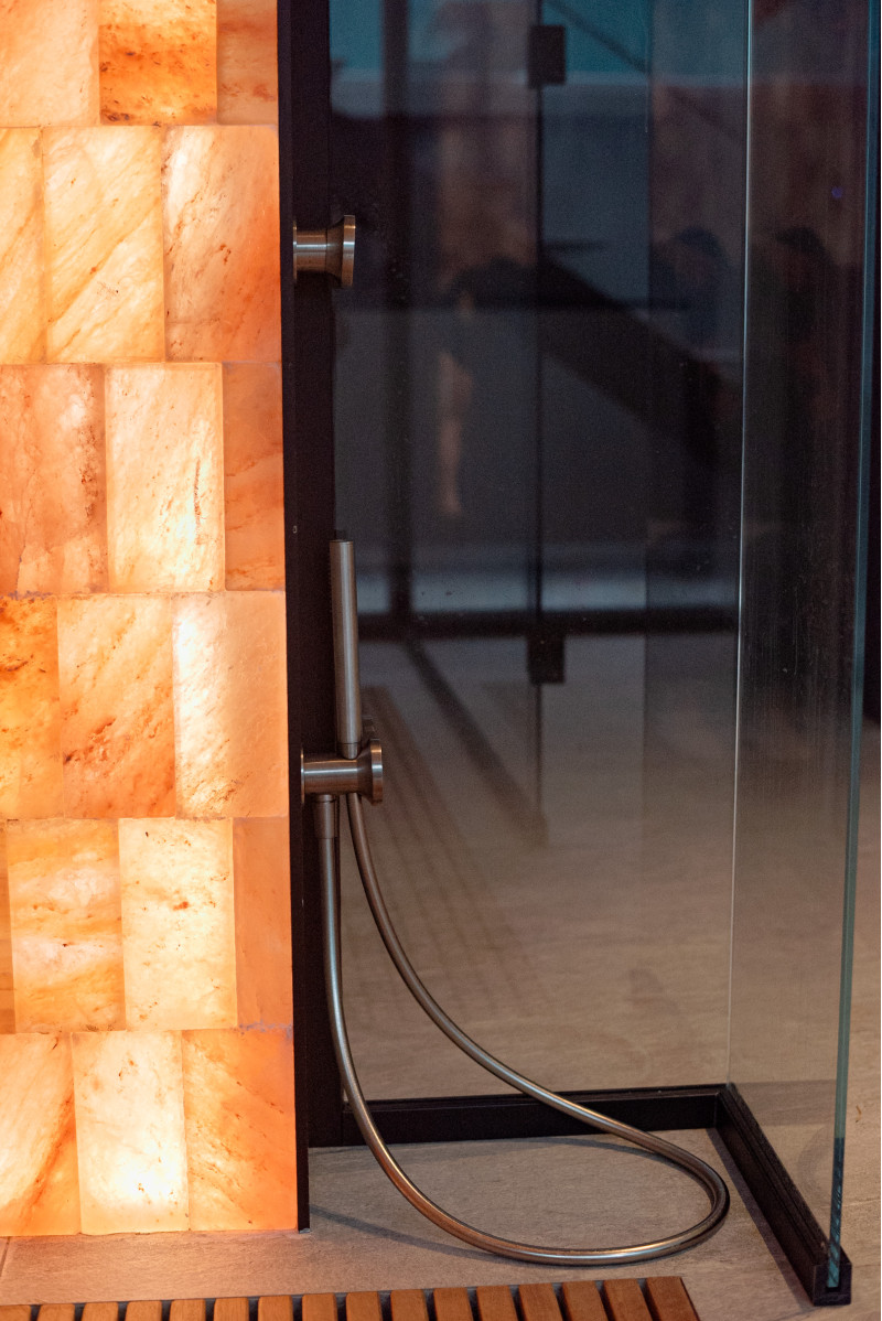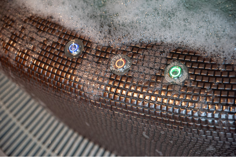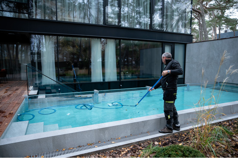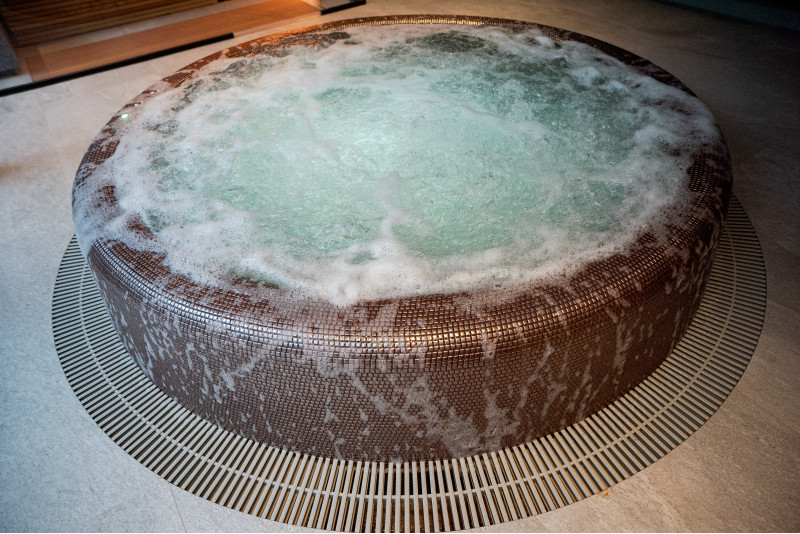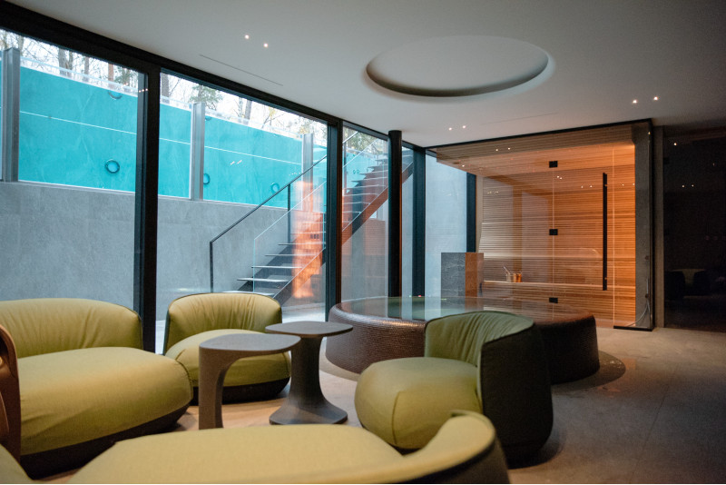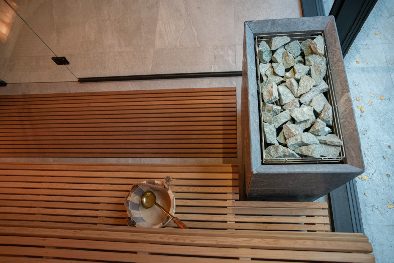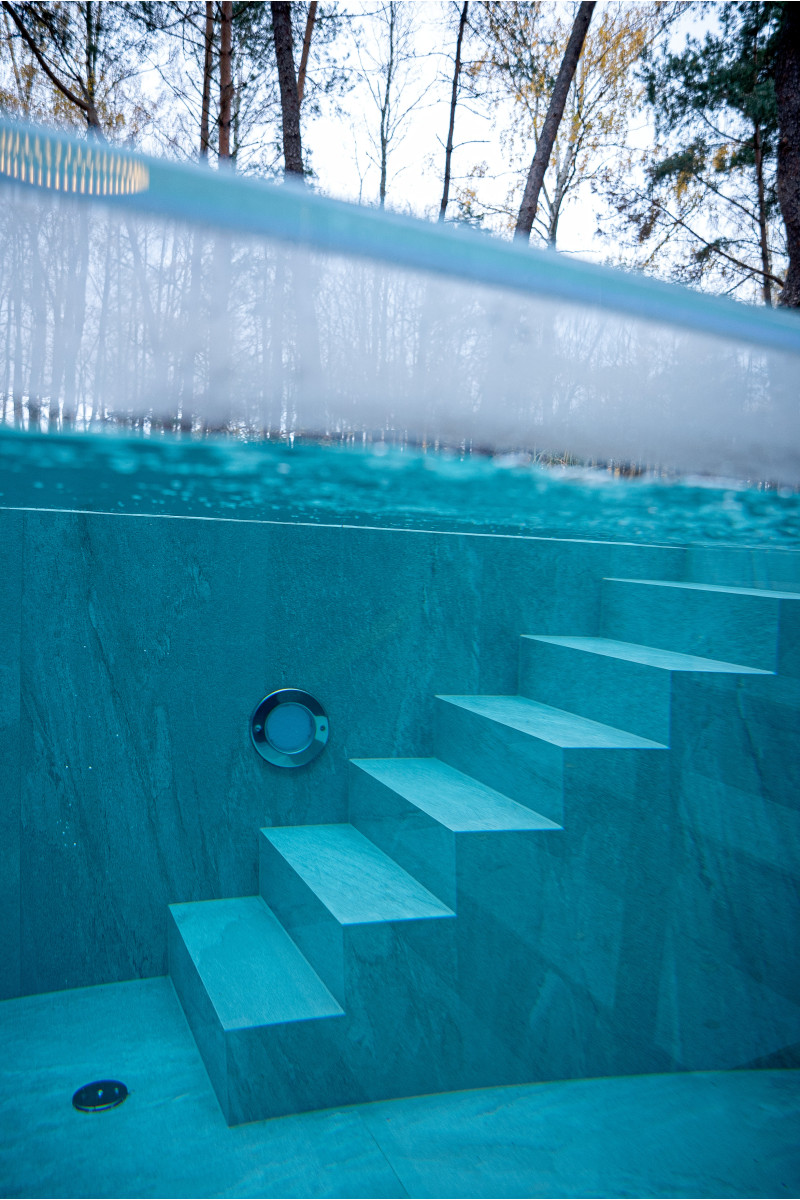 Individuelles Projekt einer Sauna, eines Außenpools, einer Aufgussvorrichtung und eines Whirlpools