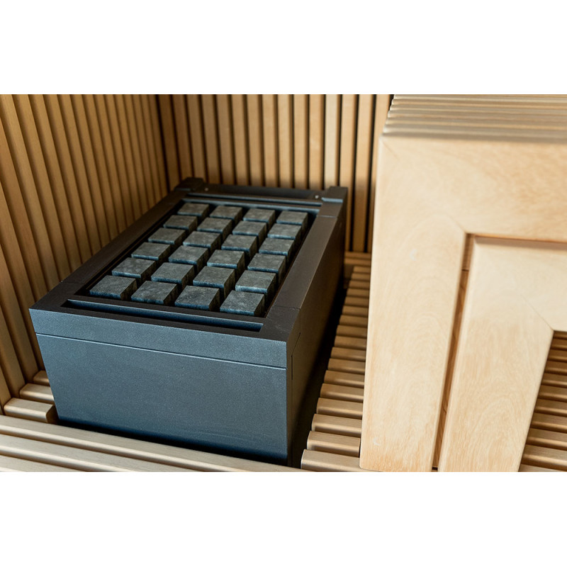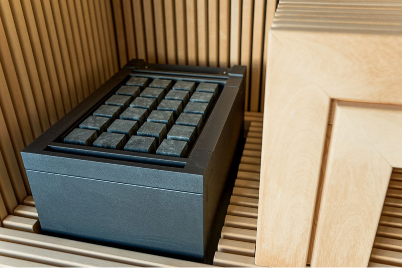 - der Ofen hat einzigartige würfelförmige Steine, wurde aber zusätzlich mit Jadeitsteinen (40kg) ausgestattet - für konstante Temperaturhaltung und angenehmen Saunagenuss