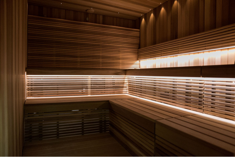 Installiert im französischen Skigebiet Courchevel, einer Sauna mit Dampffunktion und Dampfbädern.