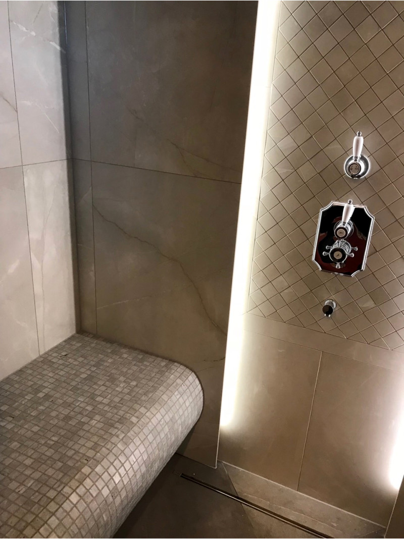 Elektrisch beheizte Böden und Bänke sorgen für zusätzlichen Komfort in der beheizten Sauna.