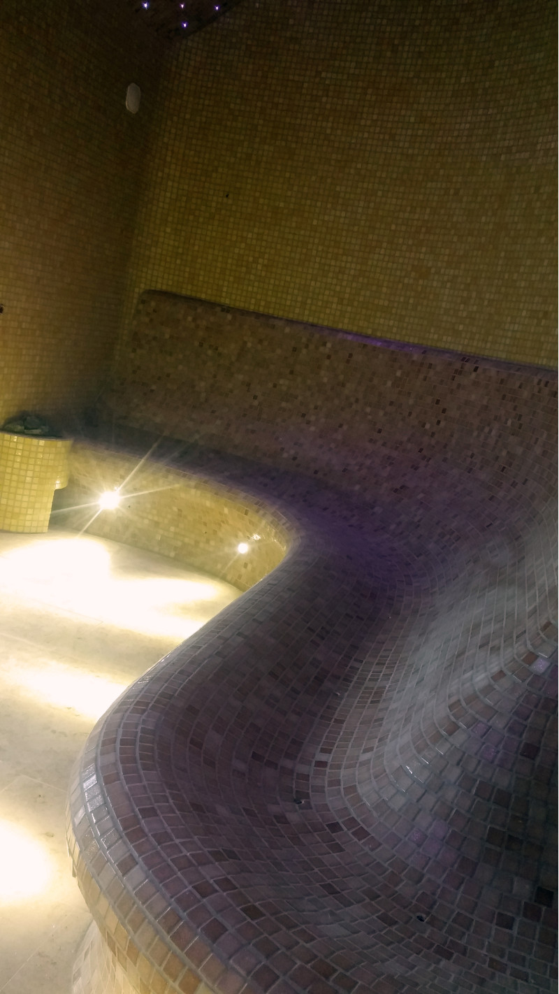 Dampfsaunabänke, Wände und Decken werden individuell aus speziellem extrudiertem Polystyrol gefertigt.