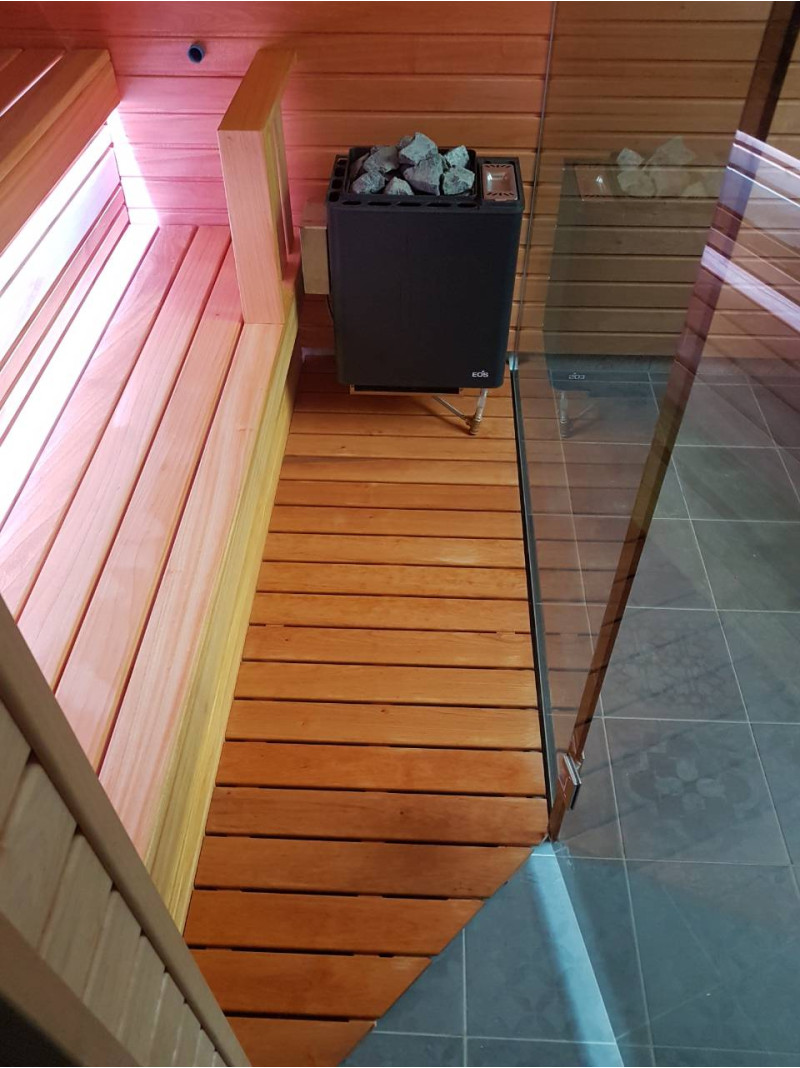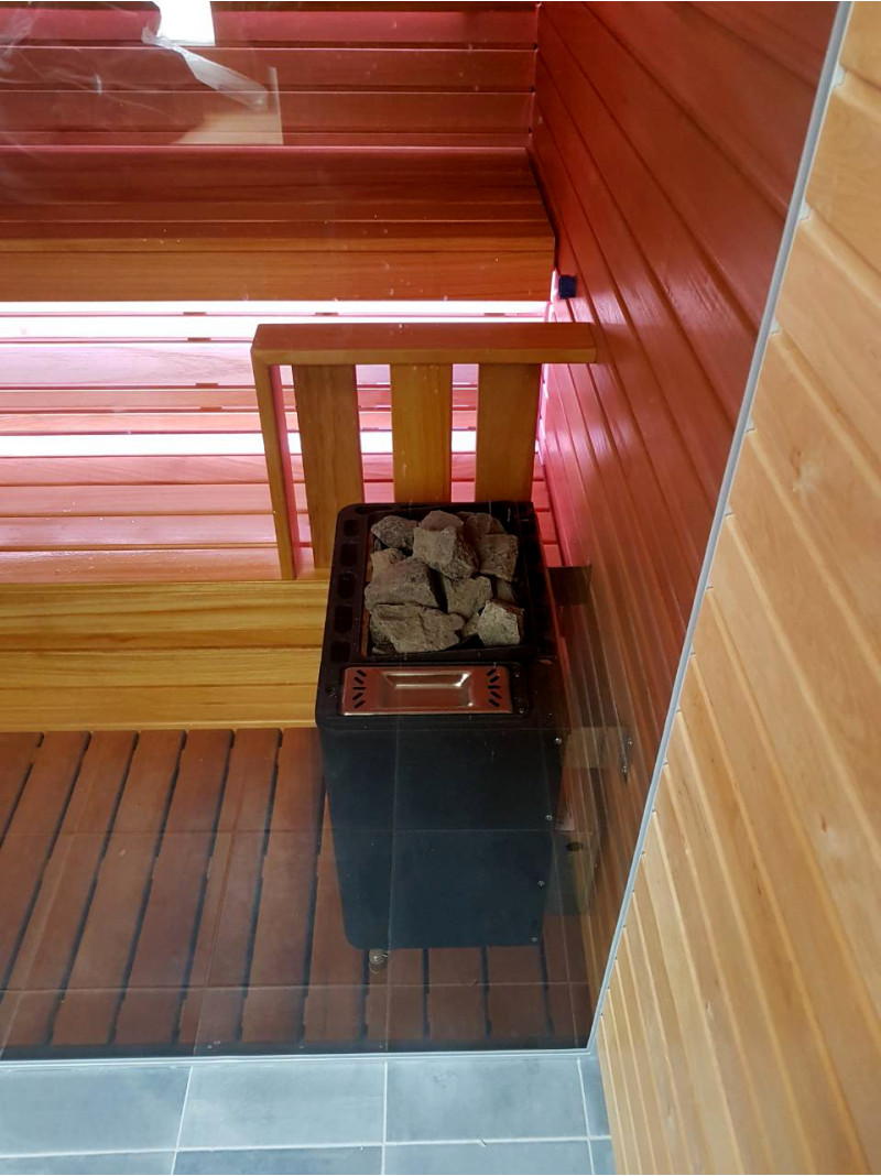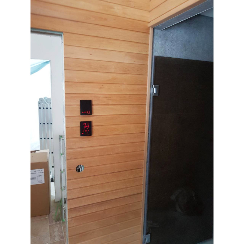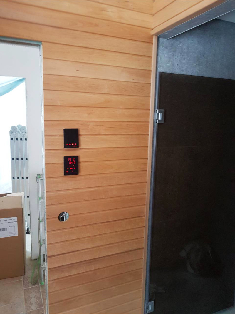 Dieses Saunaprojekt kombiniert zwei Saunamodi – Infrarot- und Dampfsauna. Der Modus kann einfach über das außerhalb der Sauna eingebaute Bedienfeld eingestellt werden.