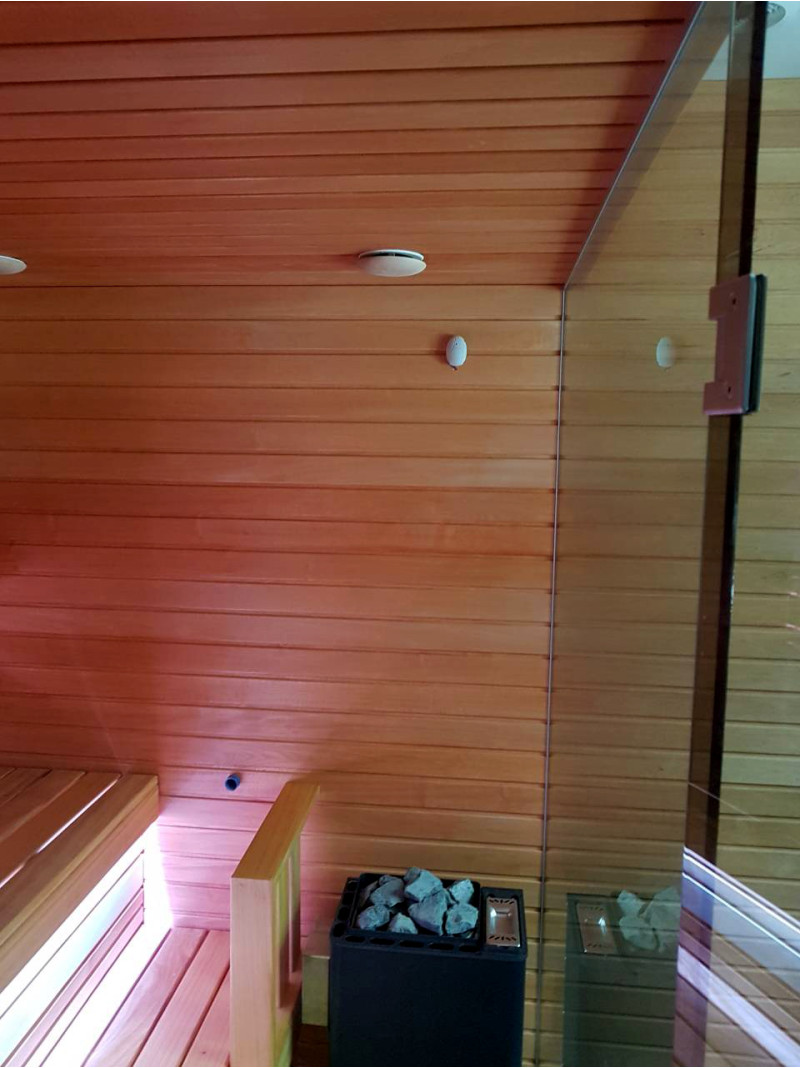 Die Sauna ist mit Lautsprechern ausgestattet, damit Sie während des Saunagenusses Ihre Lieblingsmusik hören können.
