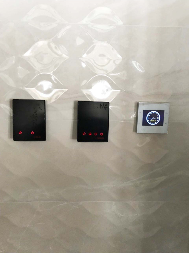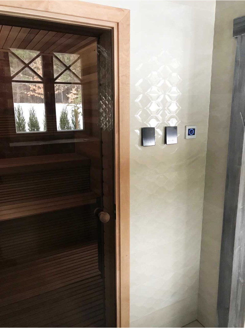 - Zwei außerhalb der Sauna installierte Bedienfelder - zur Steuerung von zwei separaten Modi. Bedienpanel Harvia Xenio Combi CX110C und Infrarot-Bedienpanel Harvia CX36I.