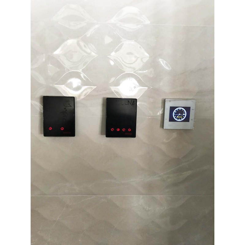 - In die Wand eingelassenes Musikzentrum mit Farb-LCD-Bildschirm. Geeignet für den Einsatz in der Sauna. Kommt mit feuchtigkeits- und hitzebeständigen Lautsprechern. Bedienung über Tasten oder Fernbedienung.