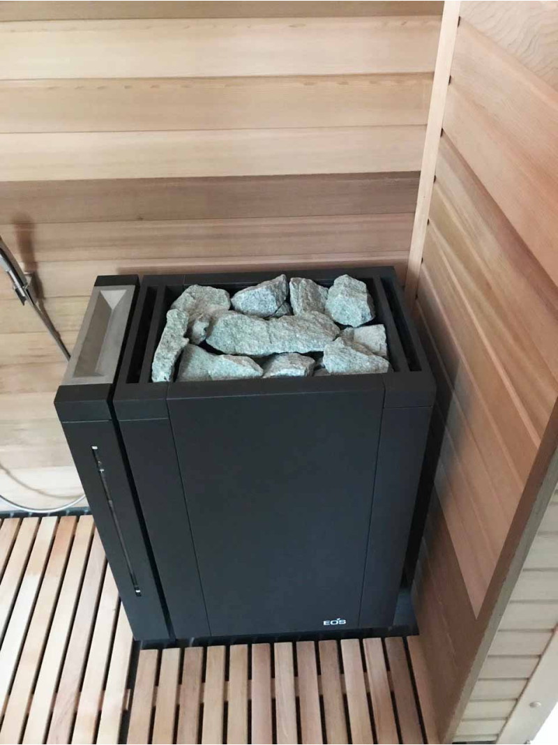 - Elektrischer Backofen im exklusiven Design EOS Mythos S45 Vapor mit Dampfgenerator. Der Ofen fasst bis zu 45 kg Jadeitsteine. Diese Menge reicht aus, um eine konstante Temperatur zu halten und die Sauna bequem zu genießen. Komfortable Wartung - die Steine berühren die Heizelemente nicht. Sie können ausgetauscht werden, ohne die Steine zu entfernen.