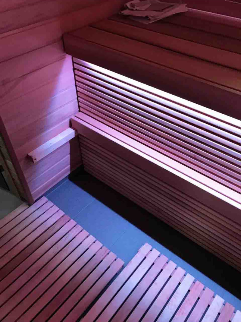 Dieses Saunaprojekt ist insofern einzigartig, als es zwei Arten von Saunen kombiniert - eine traditionelle Sauna und eine Infrarotsauna.