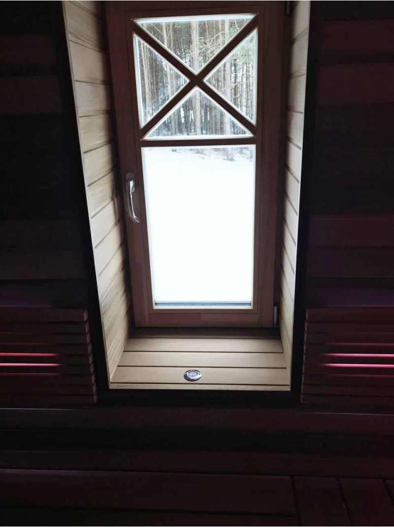 - Innenausstattung und Sonnenliegen aus hochwertigstem Zedernholz - nicht brennender Korpus. Betten aus nicht standardmäßigen breiteren Brettern - für mehr Komfort beim Baden. Schutz der Rückenlehne und des Ofengehäuses - Abachi-Riemen.