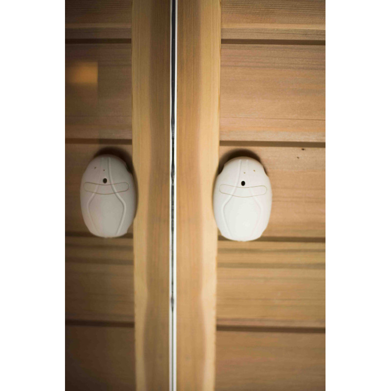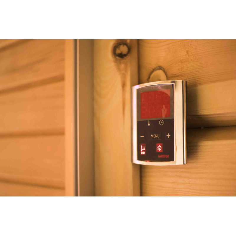 Die Wände und Decke der Sauna sind aus hochwertigstem Zedernholz, die Sitzbänke aus hochwertigstem Lindenholz.
