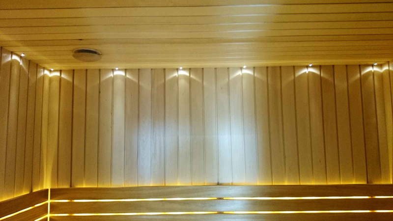 Ein weiterer Vorteil des Projekts ist ein automatisiertes Wasserfüll- und Duftsystem. Das Duftsystem ist sehr bequem im Liegen und Entspannen zu verwenden. Drücken Sie einfach einen Knopf und das Wasser oder die Mischung mit den Düften fällt auf die Steine, verteilt den Dampf und der angenehme Duft erfüllt den Raum. Das System kann im mechanischen Modus oder automatisch betrieben werden, wenn Wasser in festgelegten Intervallen zugeführt wird.