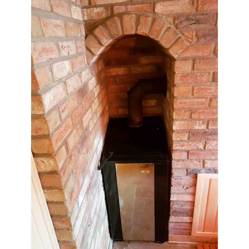 Saunaofen - Narvi Steam Master Tunnel WT - ein sehr hochwertiger, wärmespeichernder Saunaofen. Diese Heizung kann bis zu 100 kg Steine aufnehmen. Wenn Sie den oberen Deckel des Ofens öffnen und Wasser auf die heißen Steine gießen, entsteht viel angenehmer Dampf. Der Ofen besteht aus extra starkem Spezialstahl, der Korpus ist emailliert und der Feuerraum aus 25 mm Schamottesteinen. Der Saunaofen heizt die Sauna in relativ kurzer Zeit auf - 1 - 1,5 Stunden.