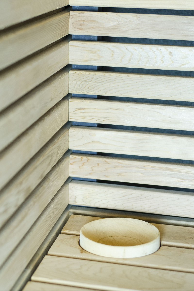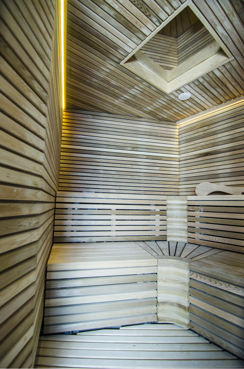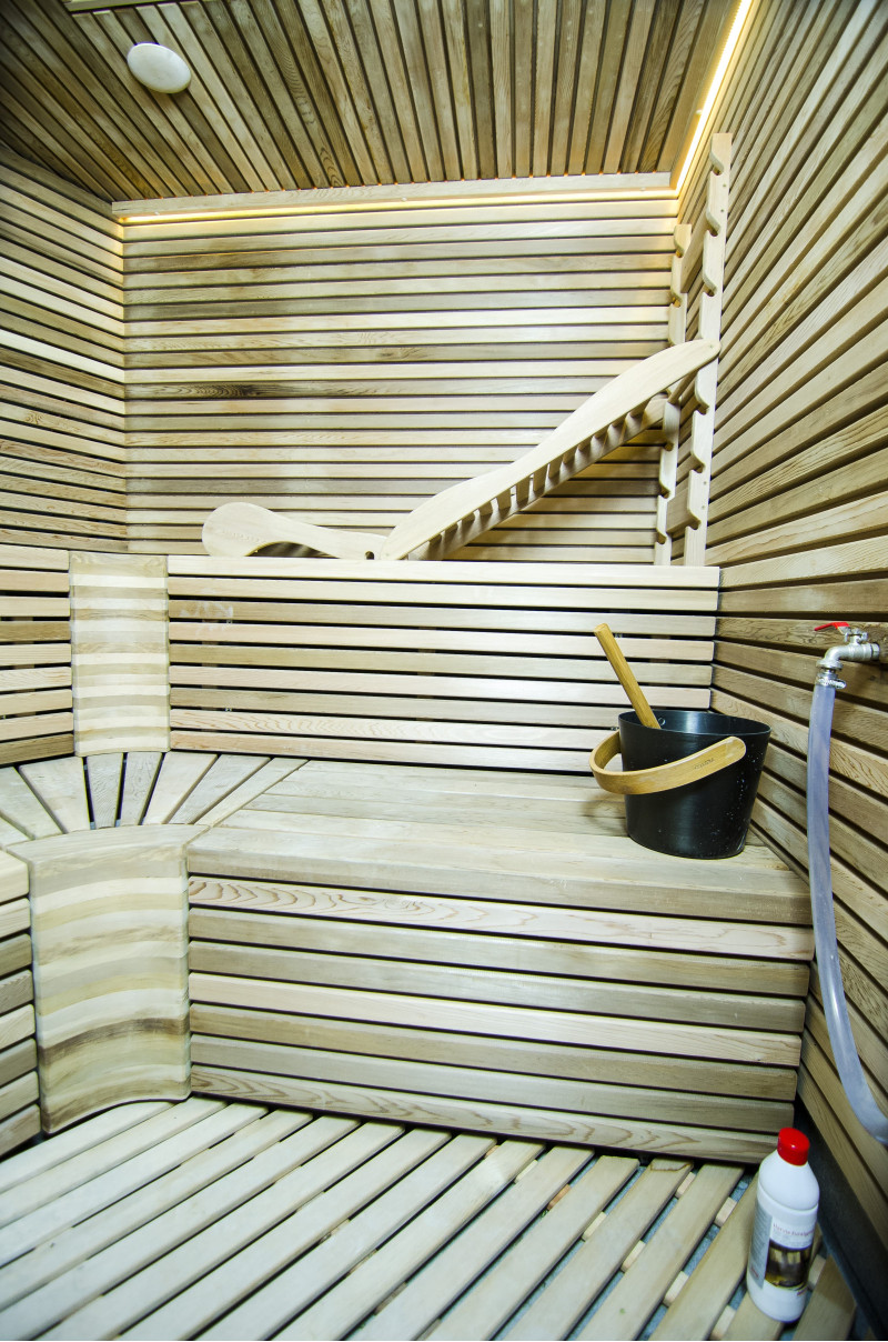 Die Wände und Bänke der Sauna sind aus hochwertigstem Zedernholz gefertigt.