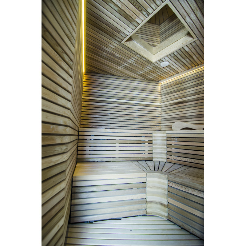 Es zeichnet sich durch Langlebigkeit aus. Zedernholz ist stark, stabil und feuerbeständig, diese Kriterien sind bei der Installation einer Sauna sehr wichtig;