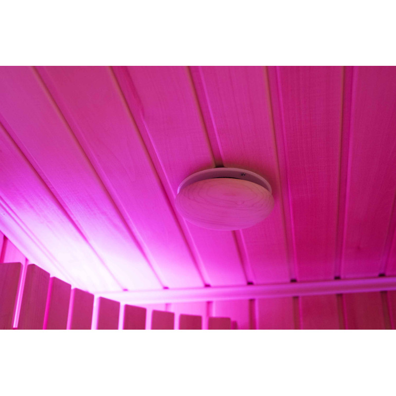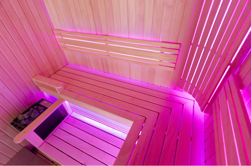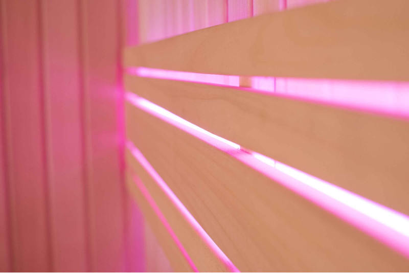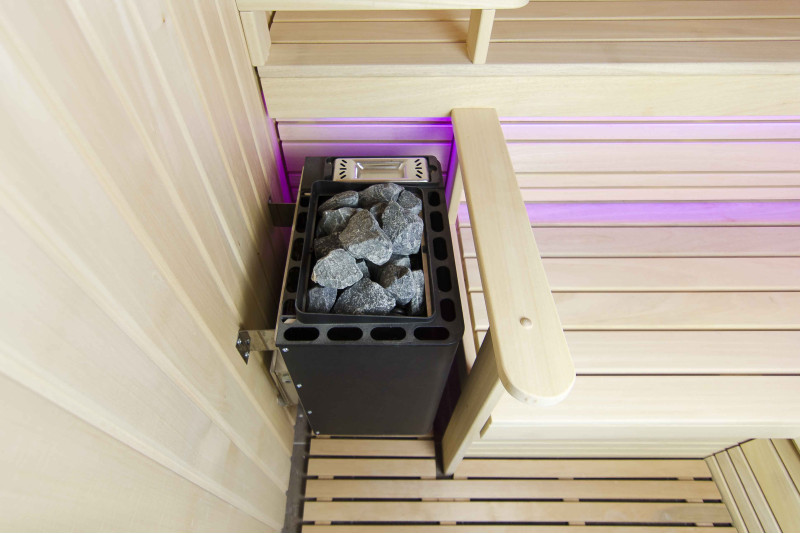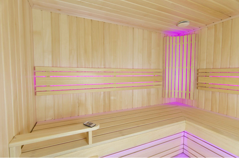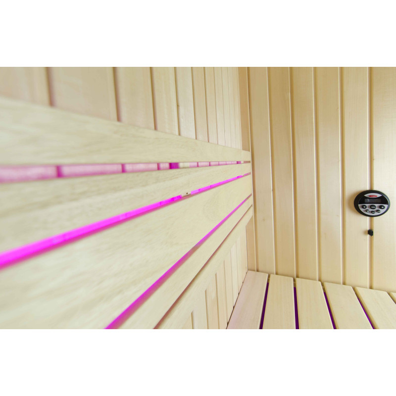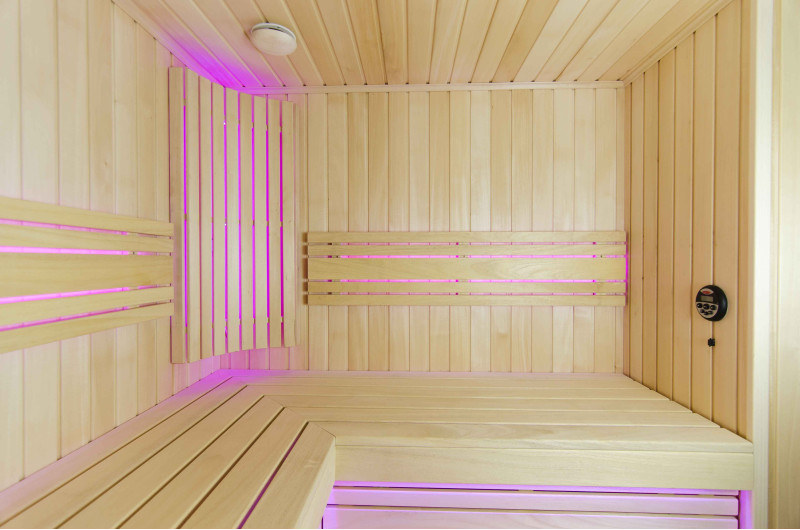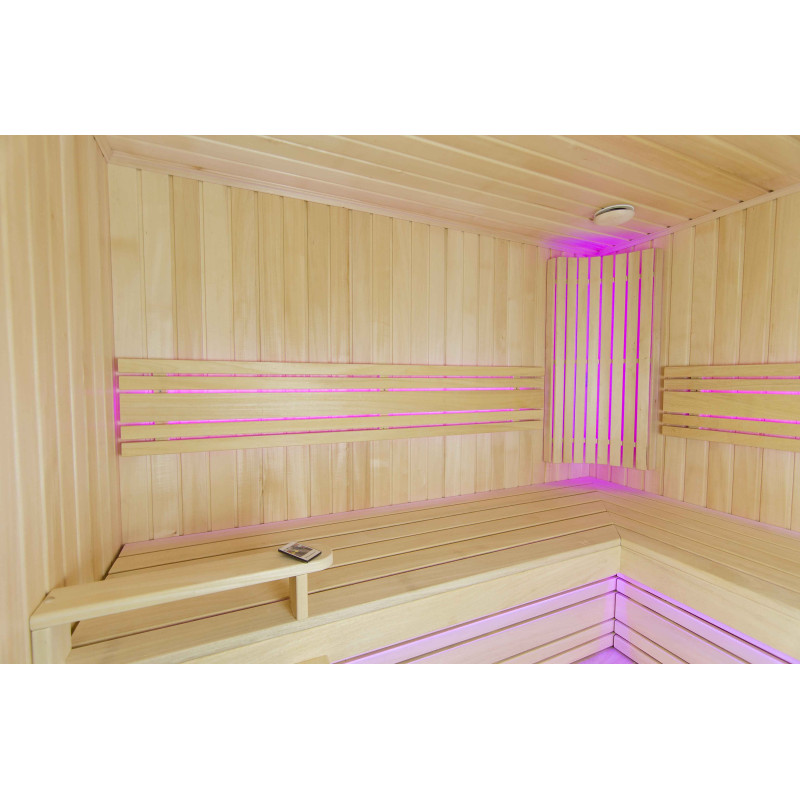 Das Innere der Sauna ist aus hochwertigstem Lindenholz, die Solarien aus Abachi-Holz - nicht heizend und perfekt für die Sauna.