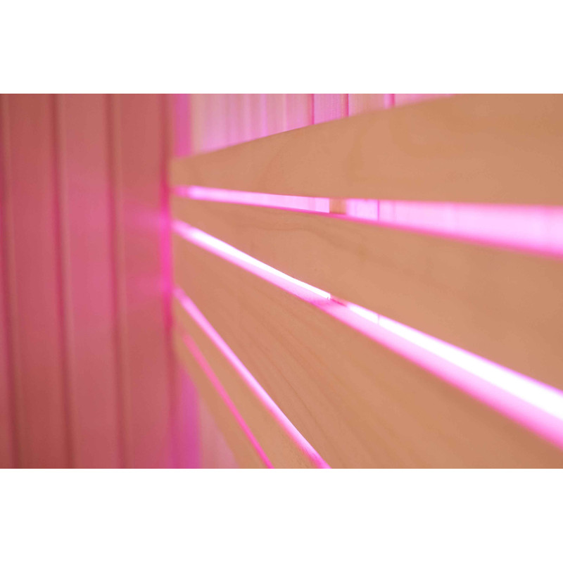 LED-Farbbeleuchtung unter den Sonnenbänken und Rückenlehnen ist am Panel einstellbar. Sie können den Farbbereich und die Intensität manuell oder automatisch ändern.