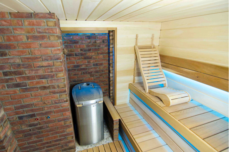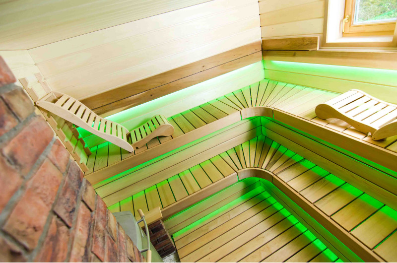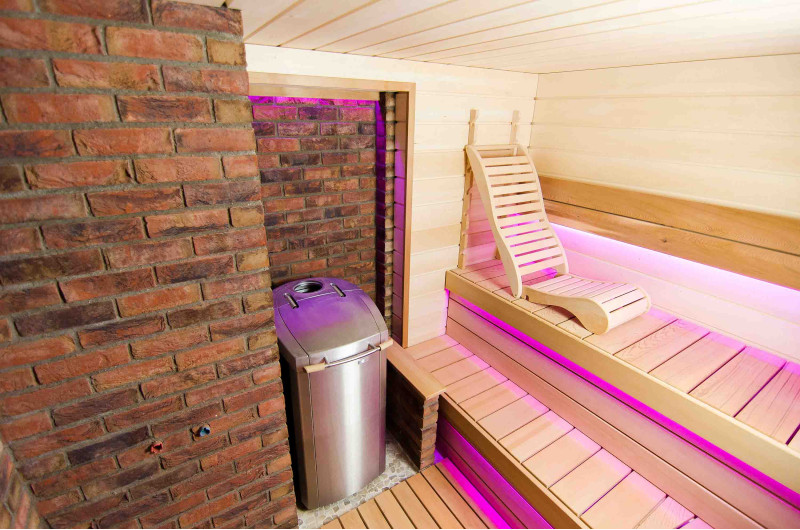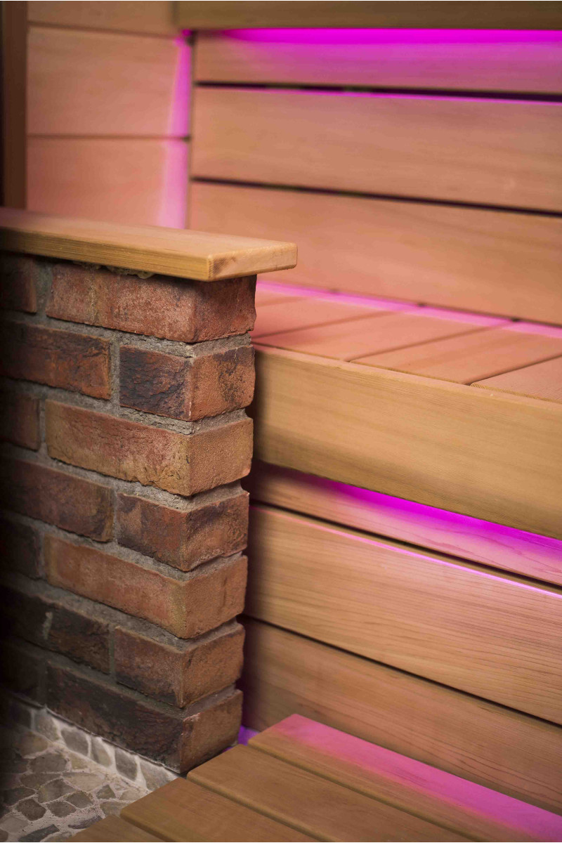 Klinker mit integrierter Beleuchtung werden ausgewählt, um die Sauna zu dekorieren.