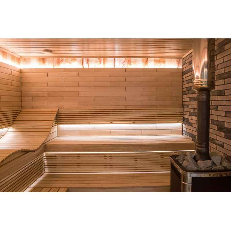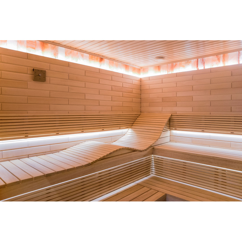 Die Himalaya-Salzbar wird von LED beleuchtet. Auch in den Rückenlehnen und unter der oberen Liege ist eine Beleuchtung eingebaut.