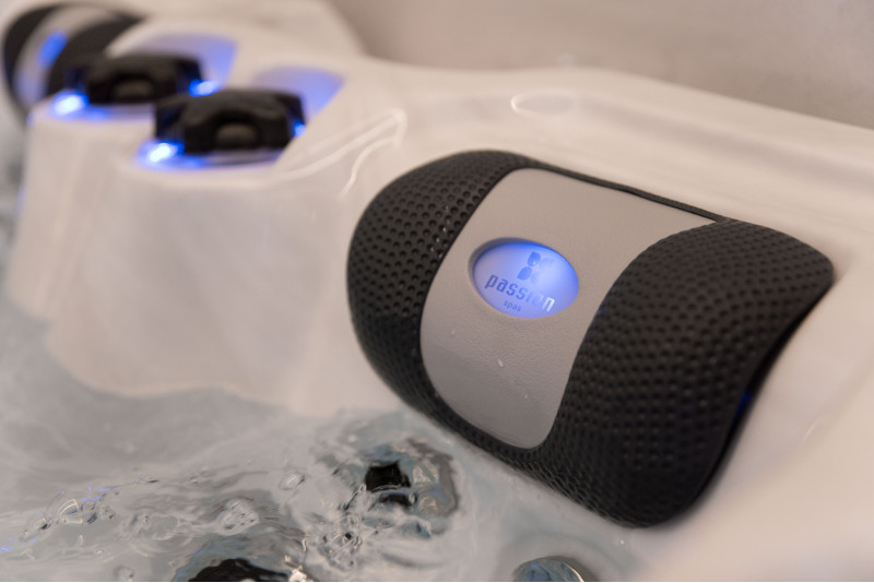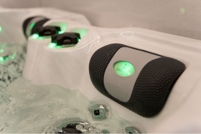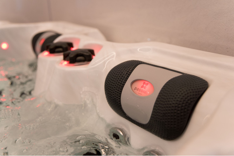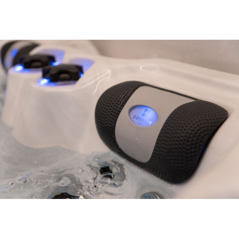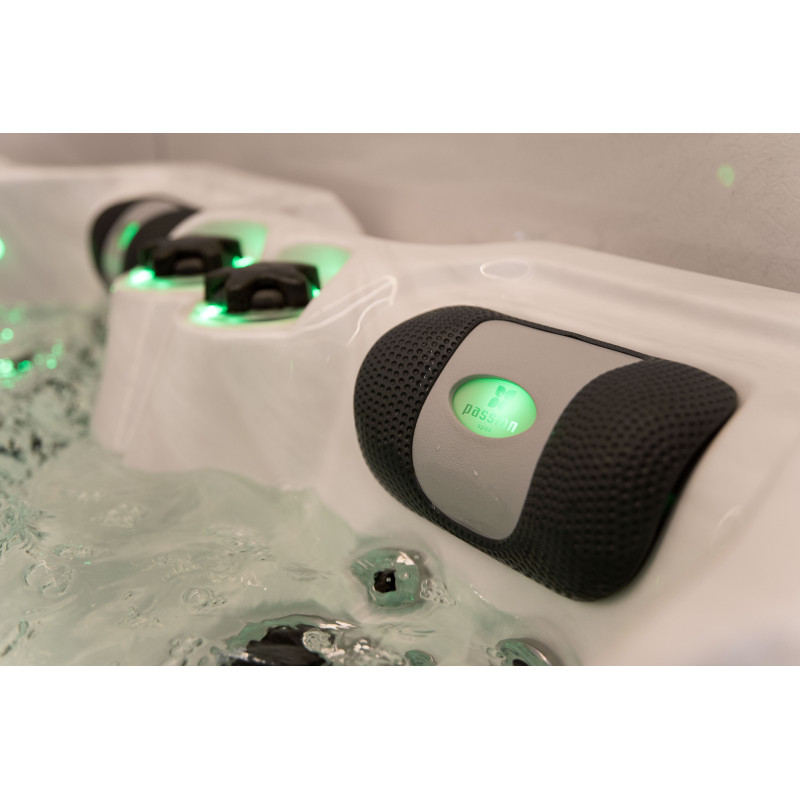 Der Spa-Pool ist mit einer LED-Farbbeleuchtung ausgestattet, die im Dunkeln besonders schön aussieht. Alle Bedienelemente und Kissen bieten eine Akzentbeleuchtung, die in Kombination mit dem integrierten Soundsystem von Passion Spas ein magisches Erlebnis schafft.