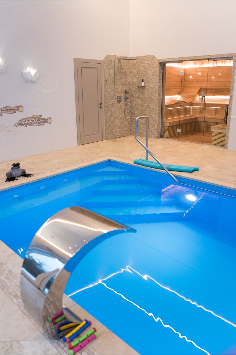 Das Spa-Projekt wird nach den individuellen Bedürfnissen der Familie gestaltet. Das Erholungsgebiet ist ausgestattet mit: