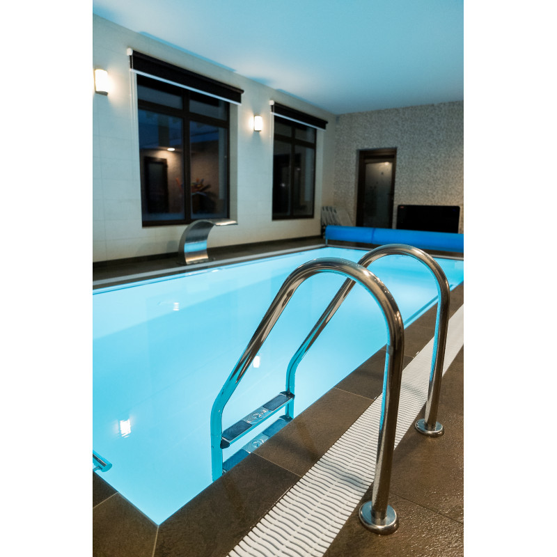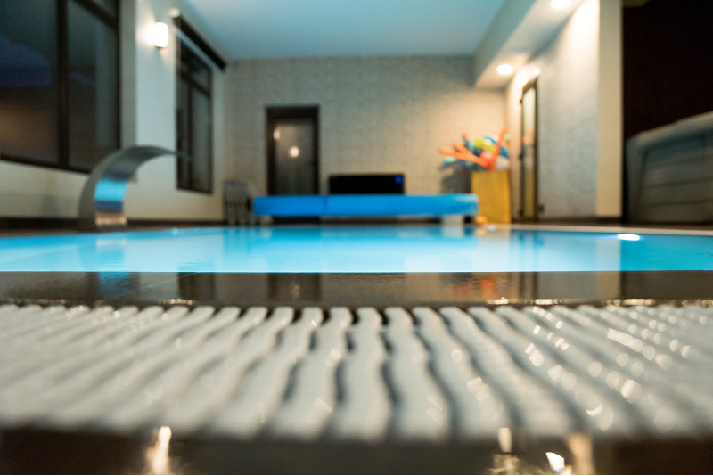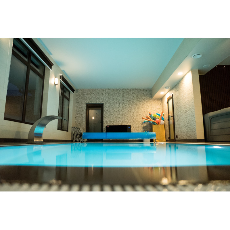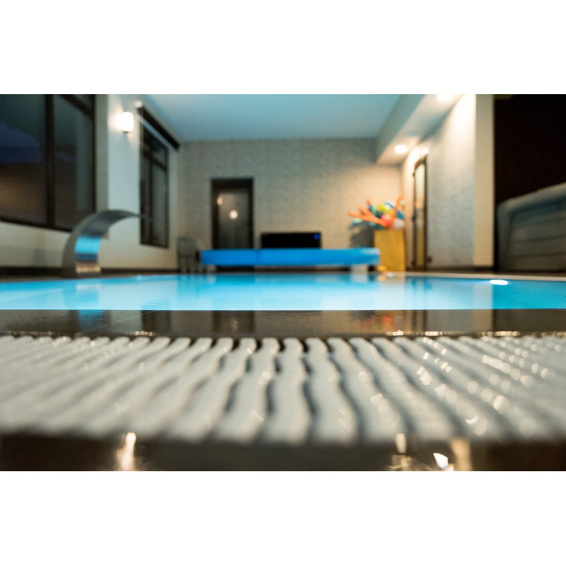 Der großzügige Pool ist mit einer schwimmenden Gegenstromanlage und einer Wasserkaskade ausgestattet. Der Pool ist ein Riesenspaß für die ganze Familie.