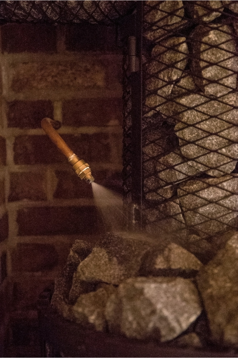 Es gibt ein automatisches Wasserfüllsystem auf den Steinen und ein automatisches Duftsystem.
