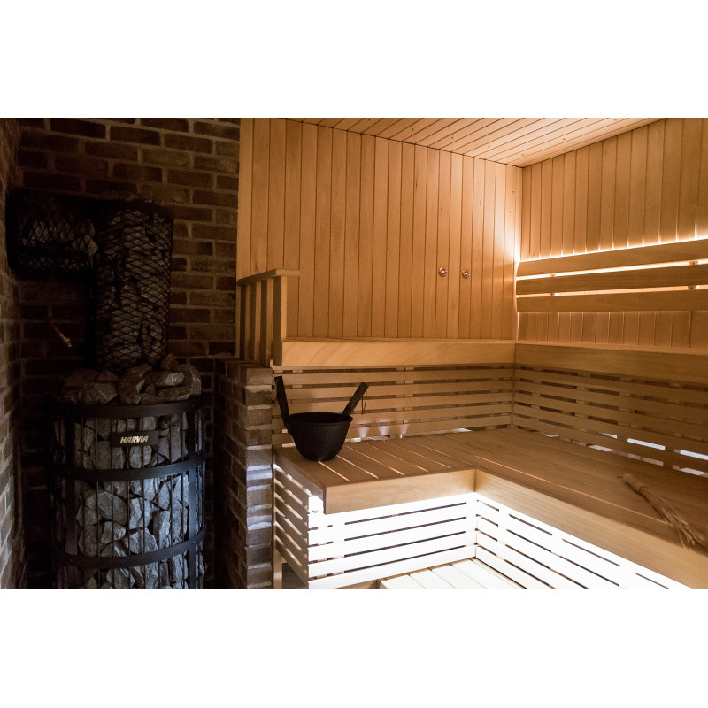 Der Saunaofen - Harvia Legend 300 Duo - ist eine gute Wahl für eine mittelgroße Sauna. Die Heizung verfügt über einen externen Kamin, sodass Sie sie bequem von einem anderen Raum aus heizen können. Außerdem fasst diese Heizung eine große Menge Steine, sodass Sie die Wärme, die sie ausstrahlen, auch ohne hohe Temperaturen genießen können. Der Ofen hat eine gusseiserne Tür und ein Glasfenster.