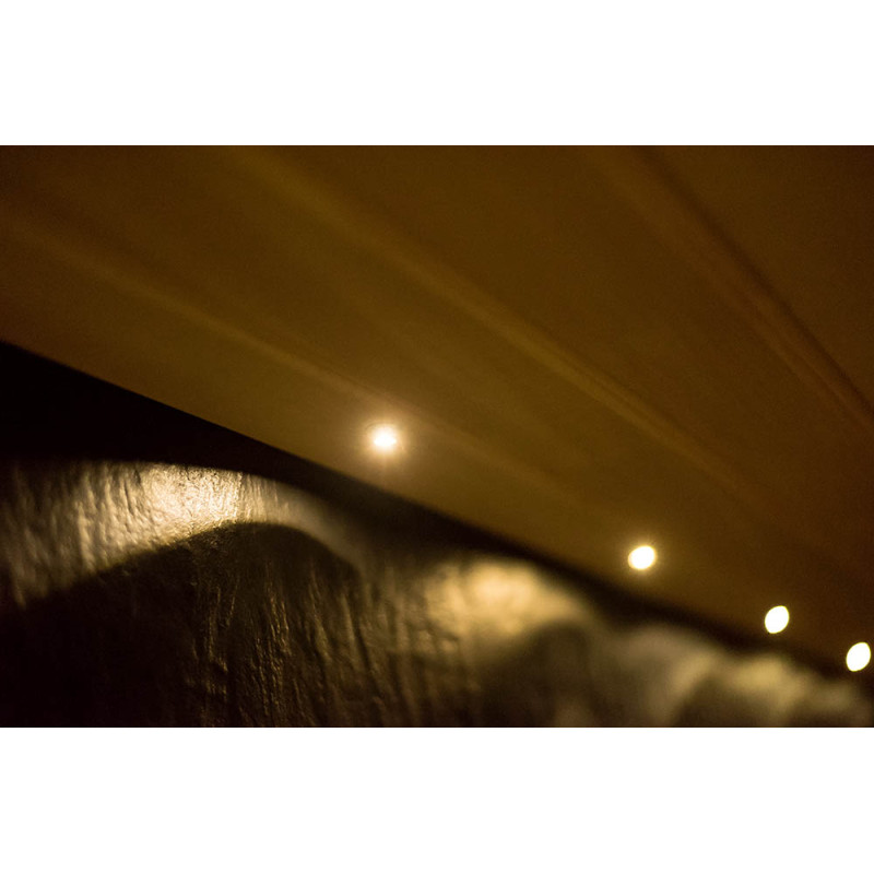- das Beleuchtungssystem verwendet ein Glasfasersystem "Sternenhimmel" und einen LED-Streifen unter den Betten,