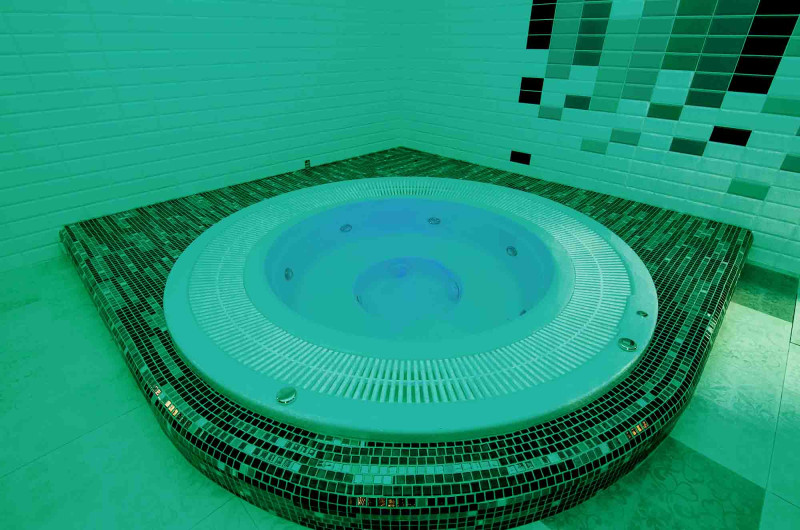 Hydromassage-Pool - kommerziell. Fliesen rund um den Pool - Glasmosaik. Ausrüstung: