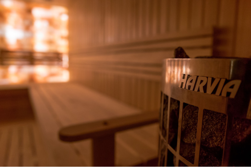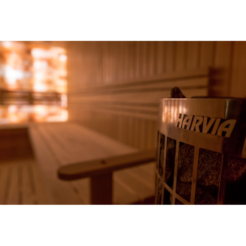 Ausstattung - Harvia-Heizung, die eine besonders große Menge an Steinen aufnimmt, damit Sie einen reichen und angenehmen Dampf genießen können.