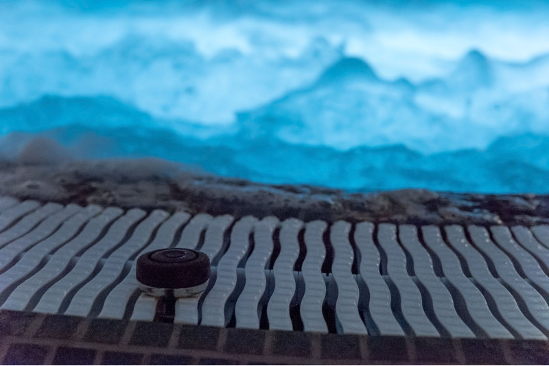 Der Hydromassage-Pool ist mit einer automatischen Dosierung von Chemikalien ausgestattet, um eine konstante Wasserreinheit zu gewährleisten.