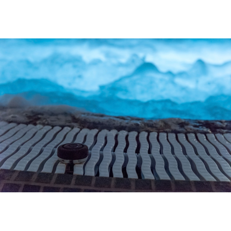 Das Poolwasser wird durch Unterwasser-LED-Leuchten beleuchtet.